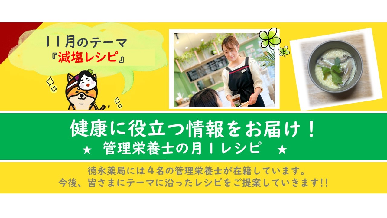 新着情報こんにちは!徳永薬局の管理栄養士です。