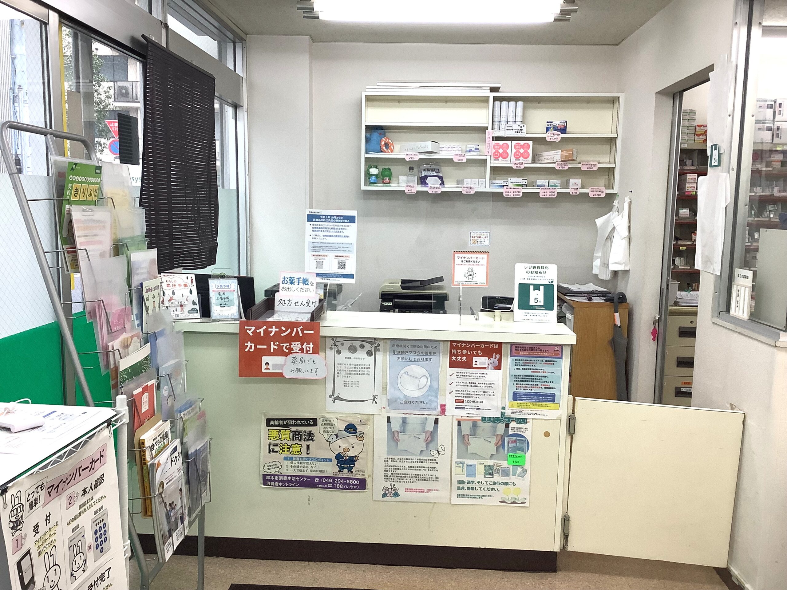 駅前の大きなビル「ミハラス」の裏手にある薬局です。 どちらの処方箋でも応需致します。 お電話、窓口でのお薬・健康相談など、お気軽にご利用ください。